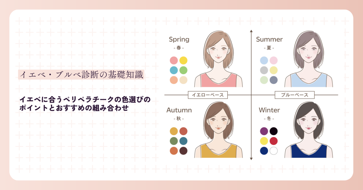 まず、イエベ(イエローベース)の特徴について理解することが重要です。肌のトーンや色味を把握することで、自分に合ったチークカラーを見つけやすくなります。ペリペラチークには多彩な色展開があり、イエベに特におすすめの色合いも多く存在します。自分の肌色を意識しながら選ぶことで、より良いメイクが実現できるでしょう。
